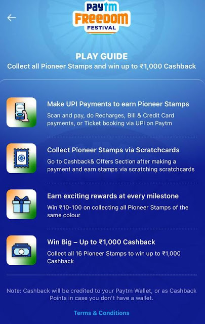 - Win Big – Up to ₹1,000 Cashback Collect all 16 Pioneer Stamps to win up to ₹1,000 Cashback